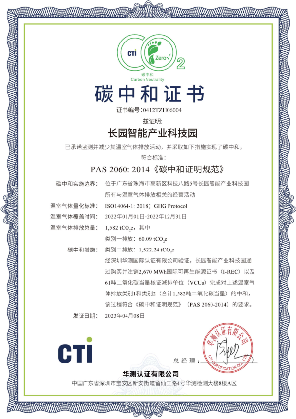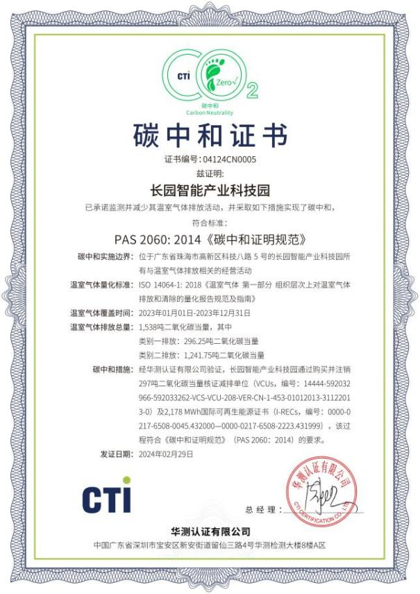 近日,710寰宇官网科技集团位于珠海高新区的“710寰宇官网智能产业科技园”完成了2023年度运营层面的碳中和认证工作,这一重要成就标志着该园区已连续两年实现碳中和目标。