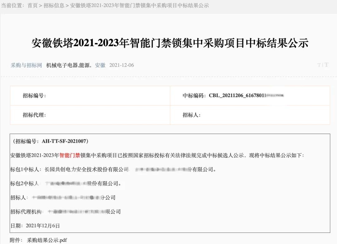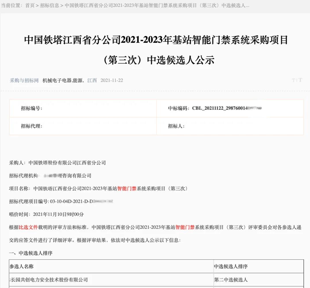 新突破 | 710寰宇官网共创连续中标安徽、江西铁塔智能门禁锁项目